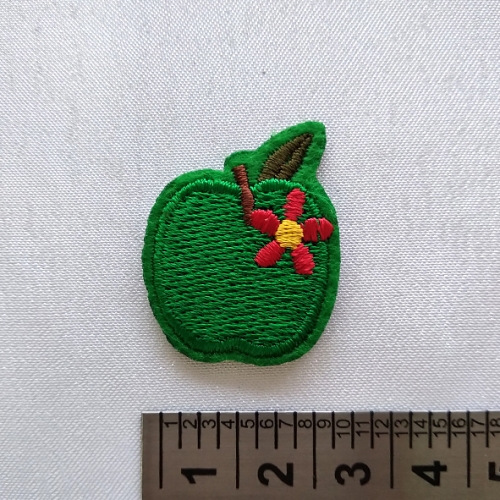 Термоаппликация ФРУКТЫ 3см (6) (Яблоко с цветочком зеленое)