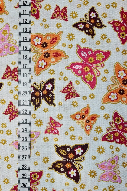 Ткань д/пэчворка ALFA 2020-2022г 100%хл, 110см (AL-10242 бабочки на белом)