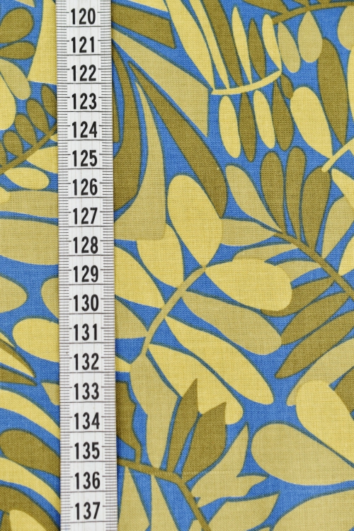 Ткань д/пэчворка ALFA 2020-2022г 100%хл, 110см (AL-7489 бежевые листья на темно- голубом)